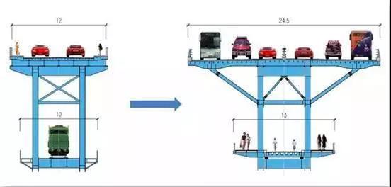 大修后,松浦大橋將舊貌換新顏,上層拓寬成雙向6車道,橋面寬24.5米,不再承擔鐵路交通運營的下層,也將作為慢行交通過江專用通道。