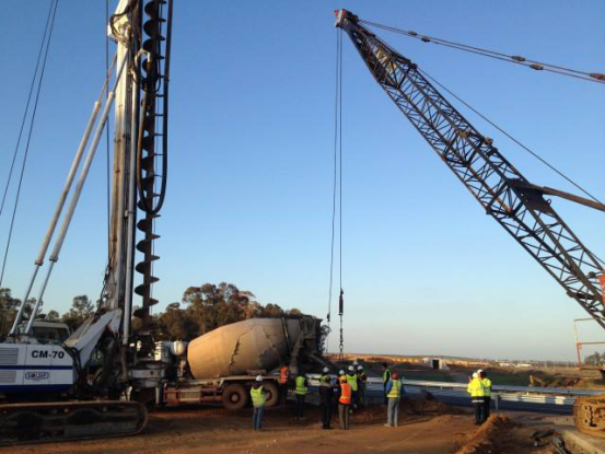 (2)坍落度過大或過小,檢測(cè)混凝土坍落度是否滿足要求,坍落度過大了,容易產(chǎn)生泌水、離析現(xiàn)象,在短時(shí)間內(nèi)出現(xiàn)粗骨料下沉,水泥漿浮在上面。使鋼筋籠下行阻力增大,導(dǎo)致鋼籠不能到位;坍落度過小,仍然會(huì)增加下籠難度,因此在施工過程中必須將坍落度嚴(yán)格控制在18~22cm;
