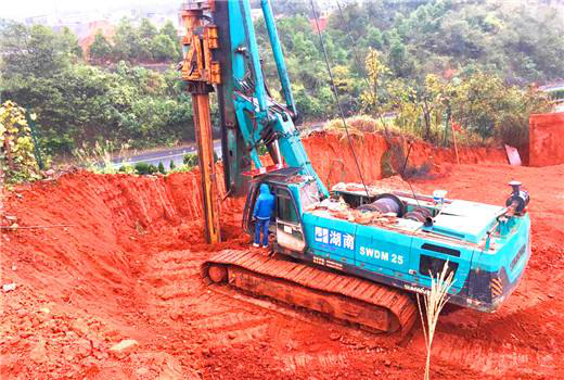 若是在打樁過程中發(fā)現(xiàn)樁身出現(xiàn)傾斜并且樁長(zhǎng)不長(zhǎng),且完好并未斷裂,或由于基坑的開挖而導(dǎo)致的樁身出現(xiàn)傾斜但是樁體仍舊完整的,可以對(duì)樁身進(jìn)行局部挖開,然后使用千斤頂對(duì)樁身進(jìn)行糾偏。