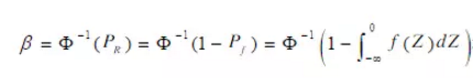 式中,Z為空間結構適用性的功能函數,R為廣義抗力,S為效應??臻g結構的適用性可靠度指標β定義: