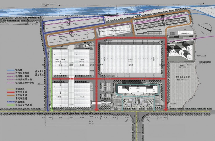 嘉寶物流基地的建設(shè)直接滿足了蘭溪經(jīng)濟(jì)發(fā)展的需求。隨著我國高速鐵路的快速發(fā)展和既有線運(yùn)能的釋放,鐵路貨運(yùn)能力得到了保障,預(yù)計(jì)到2020年,蘭溪物流運(yùn)量將超過3000萬噸。依據(jù)上海鐵路局制定的《上海鐵路局2014-2020年物流發(fā)展規(guī)劃》,上海鐵路局管內(nèi)180余個貨運(yùn)站將按城市發(fā)展水平、路網(wǎng)條件以及貨運(yùn)站規(guī)模等因素,構(gòu)建“路網(wǎng)性物流中心——區(qū)域性物流中心——物流基地”三級鐵路物流網(wǎng)絡(luò)。未來五年,更多的鐵路物流中心建設(shè)被提上了日程,杭州,義烏,湖州,金華,建德等地都陸續(xù)開展了鐵路貨場搬遷或者改擴(kuò)建工程;希望借助結(jié)構(gòu)合理的綜合運(yùn)輸體系和功能完備的口岸平臺推動鐵路貨場的升級轉(zhuǎn)型。因此浙江嘉寶物流基地的規(guī)劃策略及功能優(yōu)化也是為同類型的鐵路物流園建設(shè)提供了一些經(jīng)驗(yàn)上的探索。