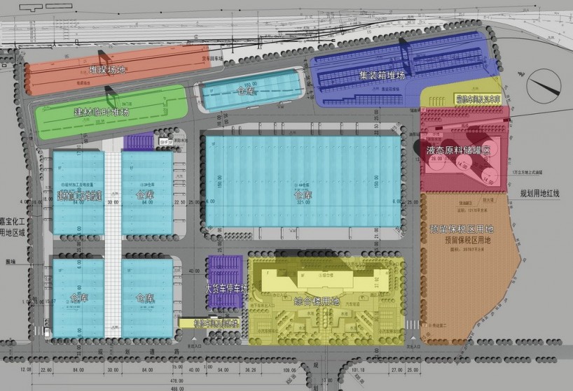 嘉寶物流園區(qū)的總平面布置原則是:根據(jù)項(xiàng)目六大部分的內(nèi)容、流程、內(nèi)外交通運(yùn)輸?shù)惹闆r,按場地的自然條件、功能要求與專業(yè)的設(shè)計(jì)規(guī)范進(jìn)行規(guī)劃布局,達(dá)到流程順暢、物流線路簡捷、進(jìn)出分道、生產(chǎn)調(diào)度方便,并考慮用地少、施工費(fèi)用節(jié)約的要求。