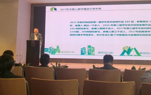 發布會伊始,中國人居環境設計學年獎王曉風老師回顧了2017年中國人居環境設計學年獎相關情況,據王曉風老師介紹,上屆學年獎共收到報名作品1236作品件,參與院校204所。其中城市設計113件,建設設計227件,景觀設計436件,室內設計460件,入圍作品134件,參展作品134件,參與人數達3000余人,2017中國人居環境設計學年獎取得了圓滿成功。