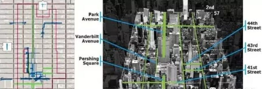 2017年8月批準(zhǔn)的曼哈頓中城East Midtown的控制性規(guī)劃修訂案將打造公共空間、營造活動場所作為核心目標(biāo),使用步行廣場、共享街道和公交走廊三種工具規(guī)劃交通空間,從公共開放空間視角重新設(shè)計(jì)街道和步道,借助城市設(shè)計(jì)手法激發(fā)街道活力,重新安排未利用空間以滿足步行者需求,重新分配街道空間以反映各類使用者真實(shí)需求。公共空間改造涉及41街、43街、44街、潘興廣場、范德堡大街和派克大街。