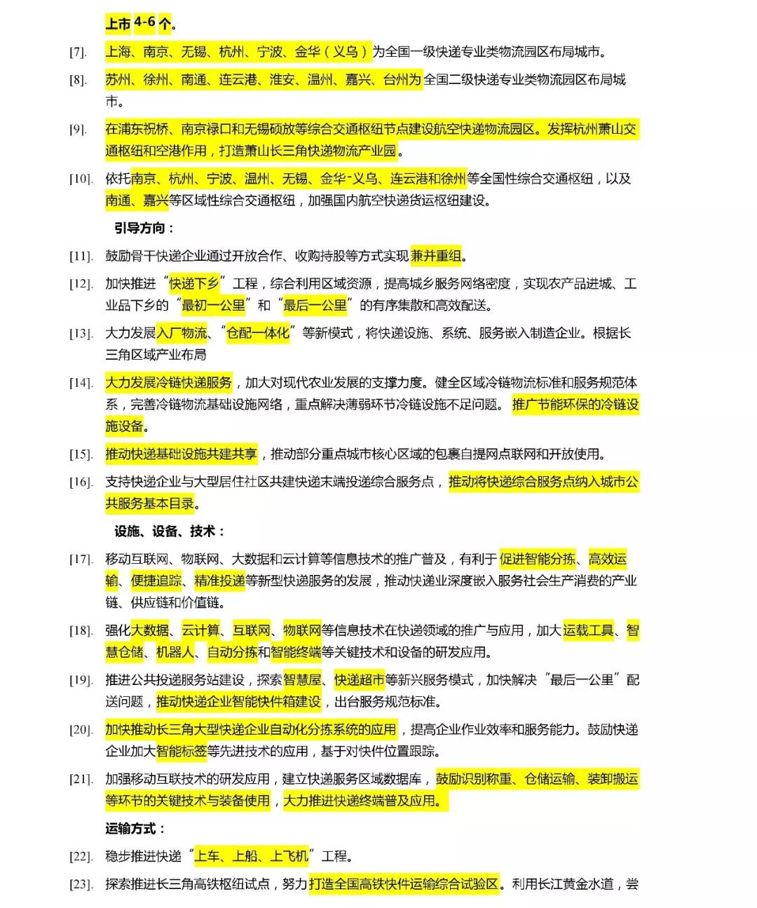 (4)到2020年,長三角地區(qū),分揀型樞紐數(shù)量由2015年的8個增至30個;快遞電子運單使用率提升至90%;快遞專業(yè)類物流園區(qū)數(shù)量由2015年的19個增至35個。