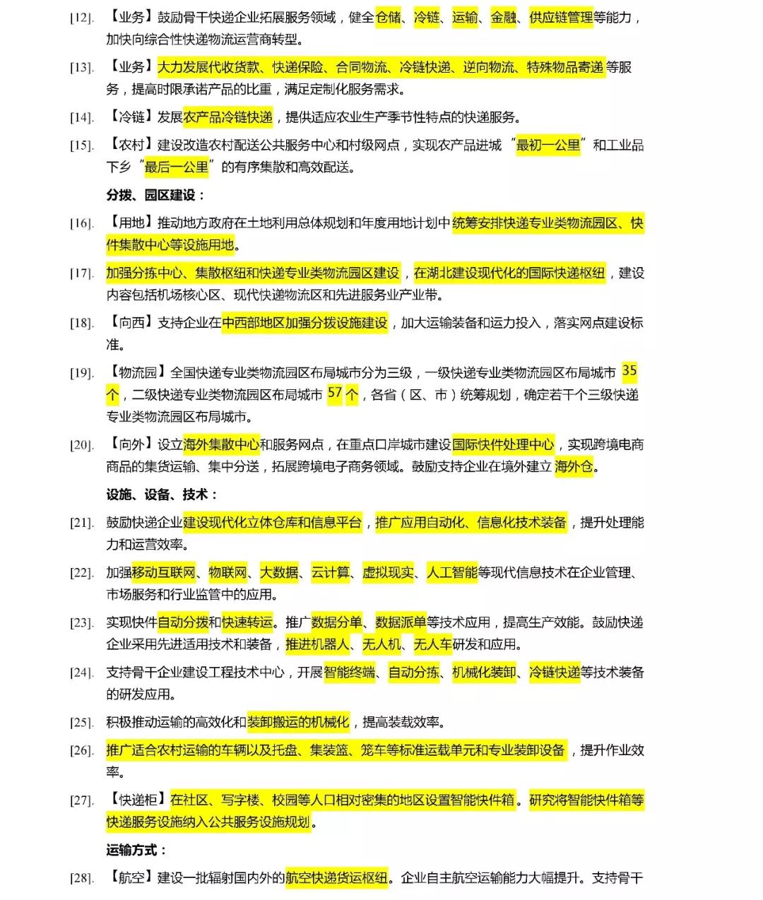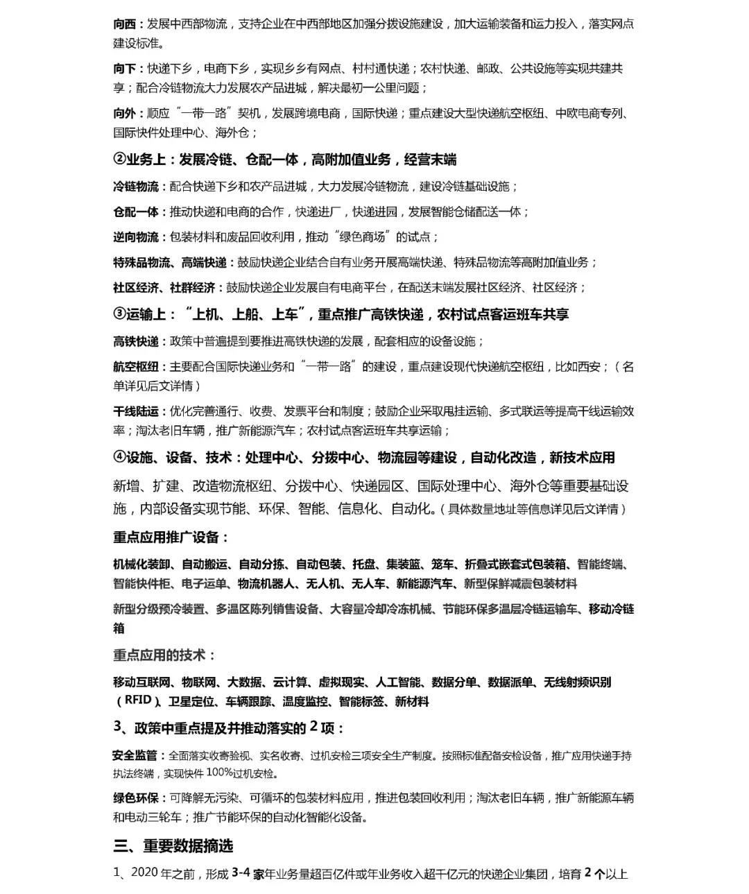(2)快遞發(fā)展方向政策也給出了指導,主要為以下幾個方面: