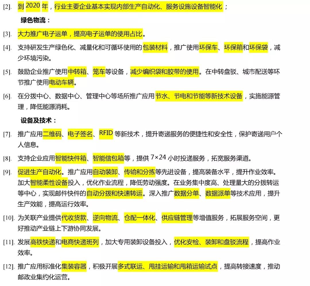 新增、擴建、改造物流樞紐、分撥中心、快遞園區(qū)、國際處理中心、海外倉等重要基礎設施,內部設備實現(xiàn)節(jié)能、環(huán)保、智能、信息化、自動化。(具體數(shù)量地址等信息詳見后文詳情)