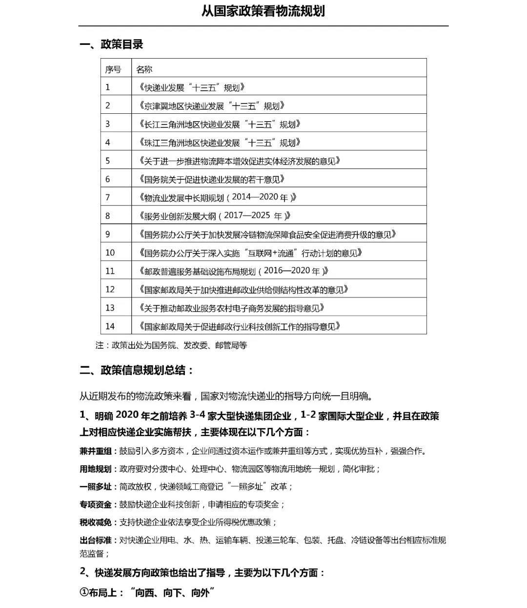 從近期發(fā)布的物流政策來看,國家對物流快遞業(yè)的指導方向統(tǒng)一且明確。