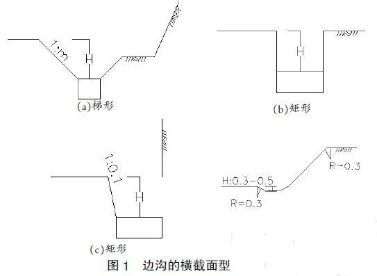 邊溝是為匯集和排除路面、路肩及邊坡的流水,在路基兩側設置的水溝.挖方地段和填土高度小于邊溝深度的填方地段均應設置邊溝,一般設置在挖方路基的路肩外側,或矮路提的坡腳外側,多于路中心線平行.