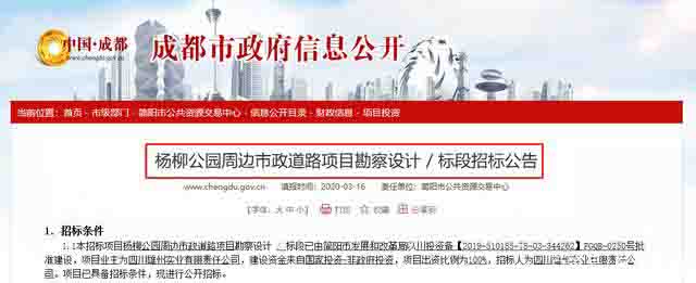 簡(jiǎn)陽(yáng)城北方向的公園方案昨日,簡(jiǎn)陽(yáng)市四川雄州實(shí)業(yè)有限責(zé)任公司正式啟動(dòng)了《楊柳公園周邊市政道路項(xiàng)目勘察設(shè)計(jì)》的招標(biāo),從招標(biāo)信息中我們可知以下信息: