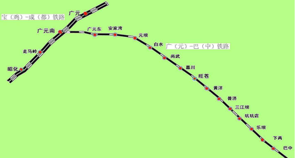 廣巴鐵路廣元至普濟段原設計時速為60公里/小時;普濟至樂壩段設計時速僅為30公里/小時,樂壩至巴中段設計時速100公里/小時,全線為非電氣化鐵路。