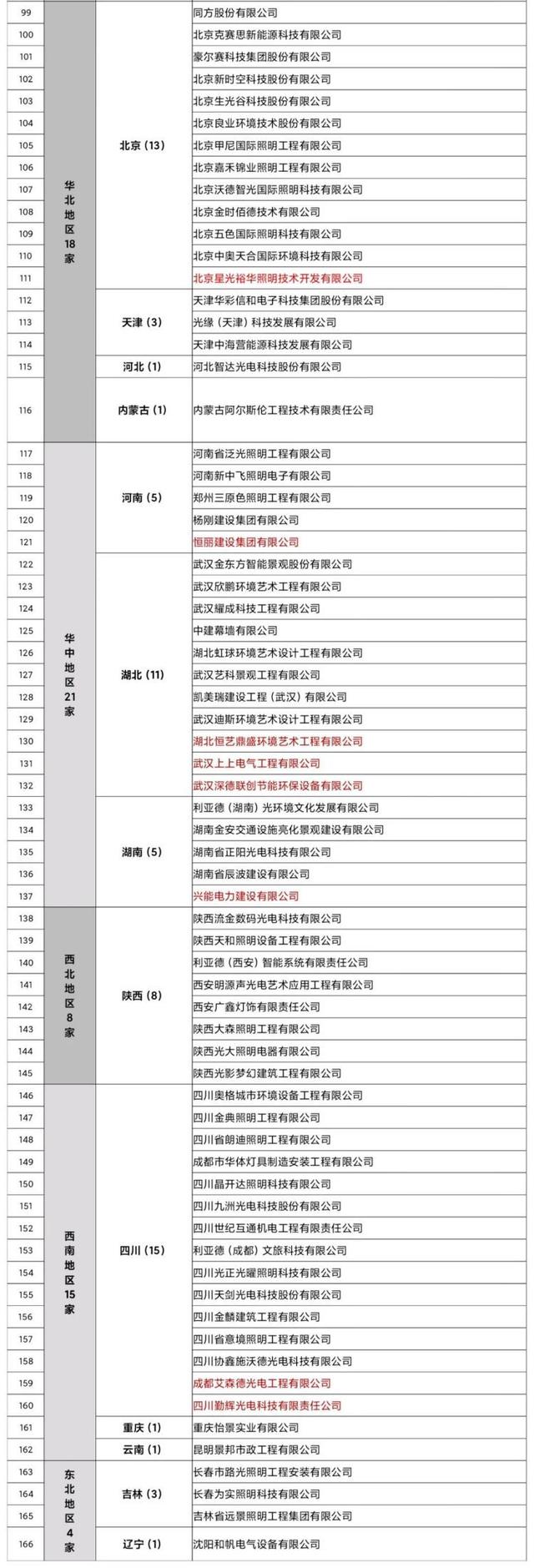 截止目前,全國(guó)擁有照明雙甲資質(zhì)的企業(yè)達(dá)到166家,分布在我國(guó)七大區(qū)域,其中華南38家,華東60家,華北18家,華中21家,西北8家,西南17家,東北4家。