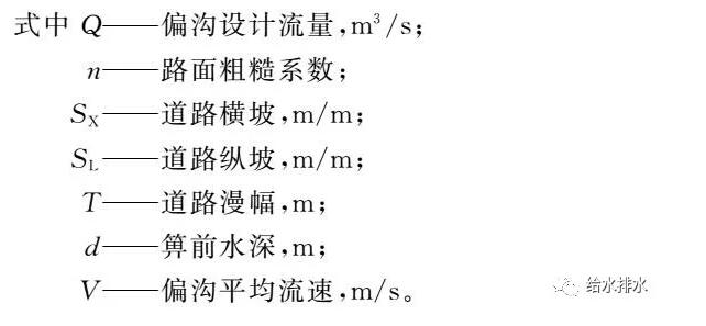 雨水口泄水能力計算安裝在單方向縱坡坡段上的偏溝式雨水口的泄水能力,按式(4)~ 式(9)計算: