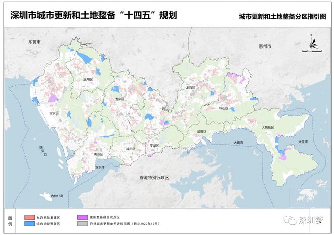 2.規劃期內,全市城市更新和土地整備實施規模不少于95平方公里。其中,完成綜合整治用地不少于45平方公里,完成直接供應用地10平方公里和空間儲備用地40平方公里。