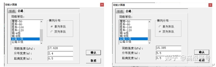 今后設(shè)計(jì)工作中:(1)對(duì)于邊坡穩(wěn)定計(jì)算,直接選擇公路I級(jí)-單列車隊(duì)或雙列車隊(duì)都可,分布位置距路基邊緣一個(gè)土路肩寬度比較科學(xué)合理,因?yàn)檐囕v橫向分布列數(shù)對(duì)高邊坡穩(wěn)定系數(shù)影響不大;(2)對(duì)于擋墻計(jì)算,直接選擇“2004路基規(guī)范擋土墻車輛車載”,軟件會(huì)根據(jù)擋墻高和填土容重自動(dòng)計(jì)算換算土柱高度,與規(guī)范規(guī)定一致;(3)對(duì)于瀝青路面結(jié)構(gòu)設(shè)計(jì)驗(yàn)算,無(wú)需對(duì)行車荷載做過(guò)多考慮,因?yàn)樾熊嚭奢d主要影響路面結(jié)構(gòu)的力學(xué)計(jì)算,而這已在HPDS里內(nèi)置的計(jì)算程序完成了。