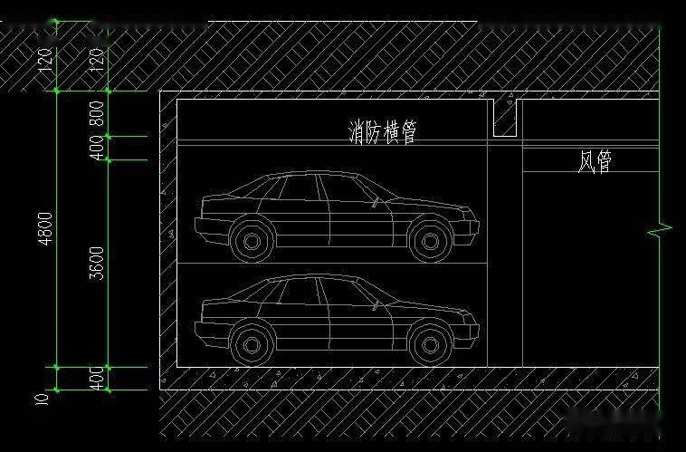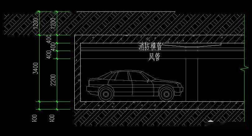 非人防普通車庫凈空高度不應(yīng)小于2.2m.