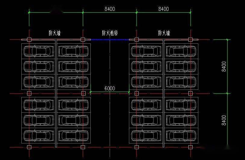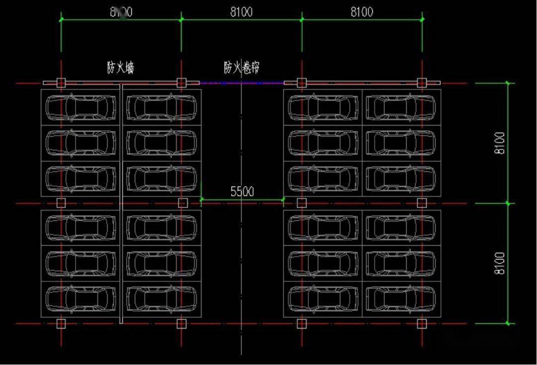 柱網(wǎng):柱網(wǎng)按7800~8400x(2a+b)/2布置。以橫向停3輛車為例,垂直行車道方向柱(2a+b)/2,其中:a為停車位深度,b為行車道寬度。