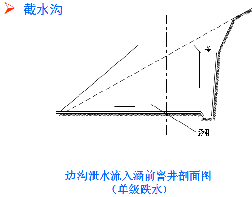4.跌水與急流槽:跌水與急流槽是路基地面排水溝渠的特殊形, 用于陡坡地段,溝底縱坡可達45度。在陡坡或深溝地段設置的溝底為階梯,水流呈瀑布式跌落的溝槽稱作跌水。跌水的作用是在較短的距離內,降低水流流速,消減水流能量,進而防止沖刷(用于坡度大于10%,水頭高差大于1.0m的陡坡地段)