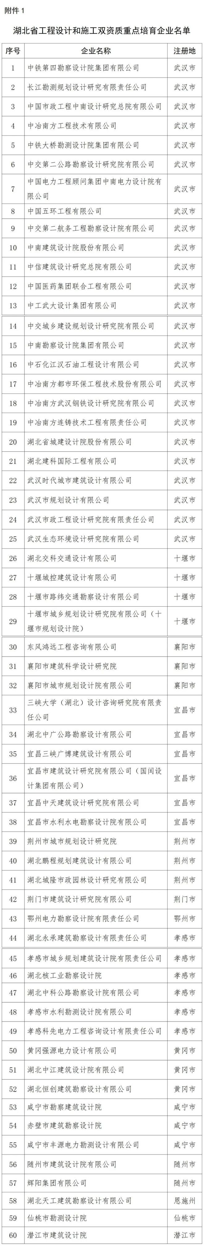 根據(jù)《關(guān)于加強(qiáng)工程勘察設(shè)計(jì)重點(diǎn)企業(yè)培育的通知》及有關(guān)文件規(guī)定,省住建廳對(duì)擬列入重點(diǎn)培育企業(yè)名單的企業(yè)進(jìn)行了公示,公示期內(nèi),無任何單位和個(gè)人提出異議。現(xiàn)將中鐵第四勘察設(shè)計(jì)院集團(tuán)有限公司、長(zhǎng)江勘測(cè)規(guī)劃設(shè)計(jì)研究有限公司、中國市政工程中南設(shè)計(jì)研究總院有限公司等60家重點(diǎn)培育企業(yè)予以公布(附件1)。