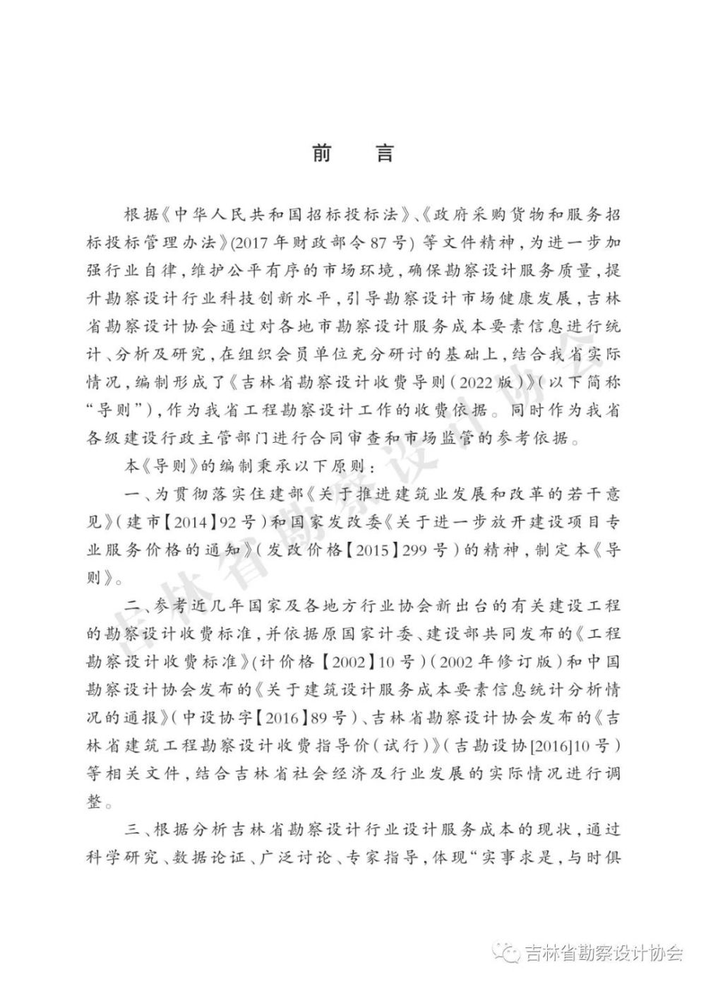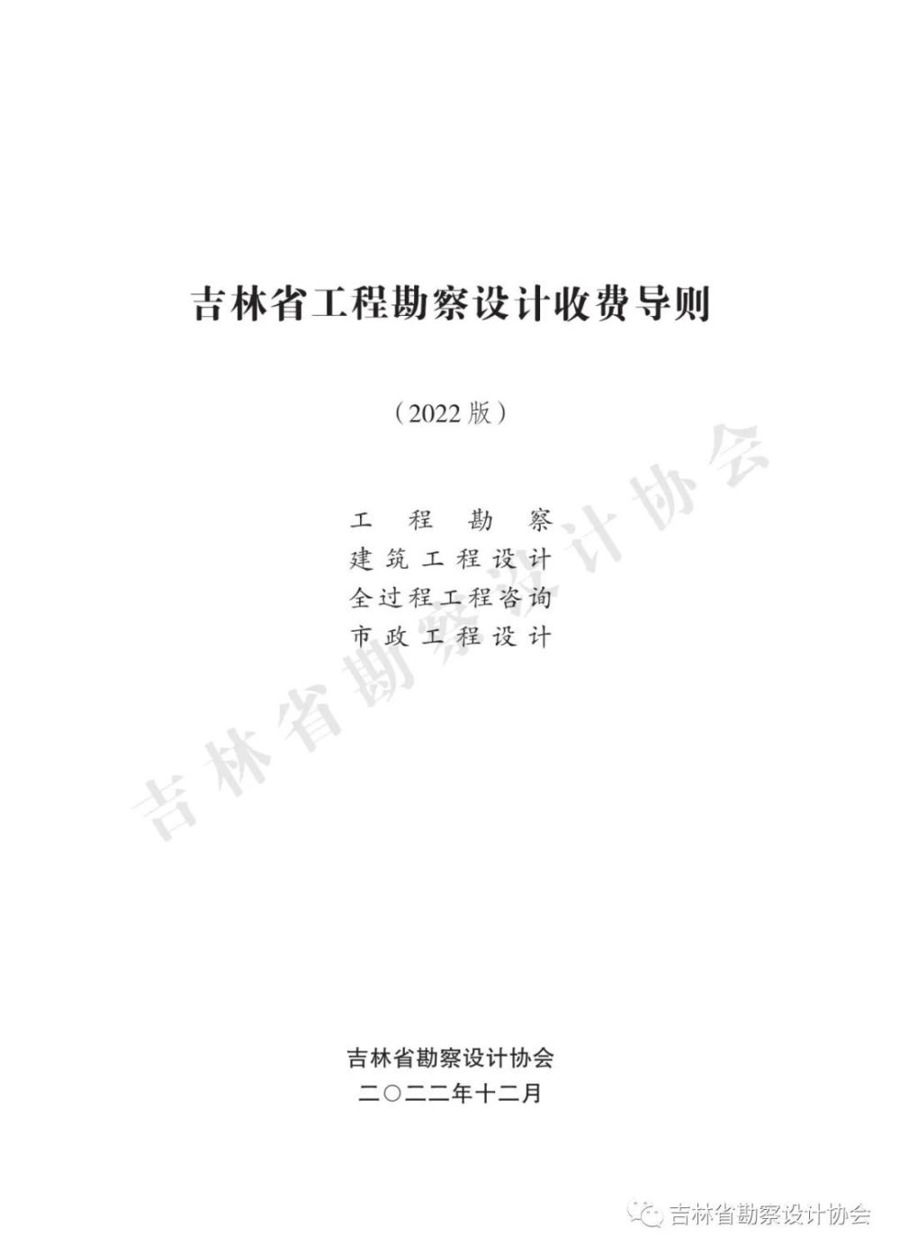 吉林省工程勘察設(shè)計(jì)收費(fèi)導(dǎo)則(2022版)》