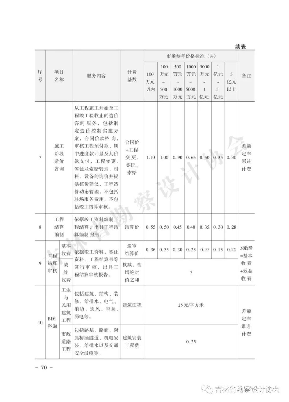 為進(jìn)一步維護(hù)公平有序的市場(chǎng)環(huán)境,引導(dǎo)勘察設(shè)計(jì)市場(chǎng)健康發(fā)展,近日,吉林省工程勘察設(shè)計(jì)行業(yè)協(xié)會(huì)發(fā)布地方工程勘察設(shè)計(jì)收費(fèi)導(dǎo)則,對(duì)工程勘察、建筑工程、全過程工程咨詢、市政工程設(shè)計(jì)收費(fèi)進(jìn)行規(guī)定。
