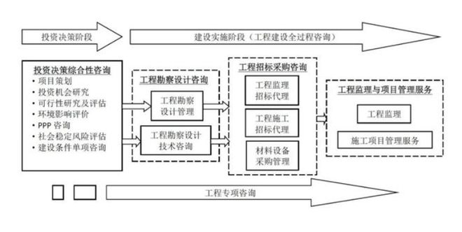 全過程工程咨詢是指工程咨詢方綜合運用多學科知識、工程實踐經驗、現代科學技術和經濟管理方法,采用多種服務方式組合,為委托方在項目投資決策、建設實施乃至運營維護階段持續提供局部或整體解決方案的智力性服務活動。