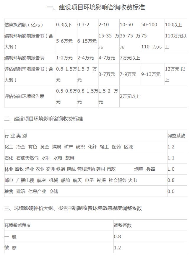 環境影響咨詢取費可參考《建設項目環境影響評價收費標準》(計價格〔2002〕125號),以估算投資額為計費基數,根據建設項目不同的性質和內容,采取按估算投資額分檔定額方式計費。