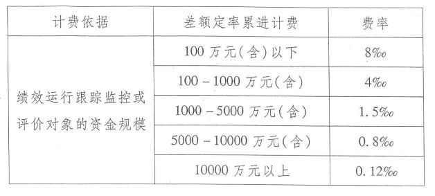 全咨單位參與預算績效管理服務取費可參考地方收費標準,如湖北省地方標準——《湖北省財政廳關于印發<湖北省第三方機構參與預算績效管理工作暫行辦法>的通知》(鄂財績規〔2014〕3號),績效運行跟蹤監控和績效評價全部委托服務采用計件收費方式的,以績效運行跟蹤監控或評價對象的資金規模為計費依據。