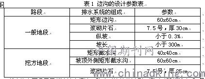 路基的地面排水主要是采取設置貫通全線的邊溝來進行的,邊溝的設計參數(shù)如下表1所示。