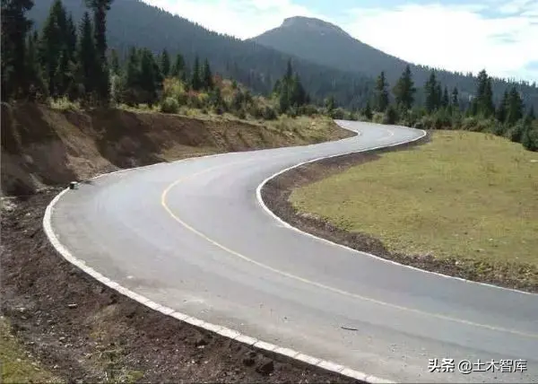 (4)長直線或長下坡盡頭的平曲線,除曲線半徑、超高、視距等必須合規定外,還必須采取設置標志、增加路面抗滑能力等安全措施。