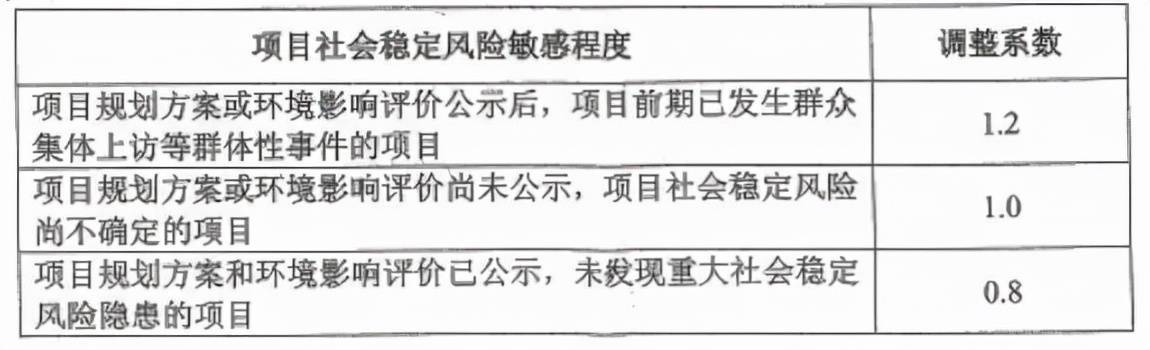 表7 社會穩(wěn)定風險敏感程度調整系數(shù)