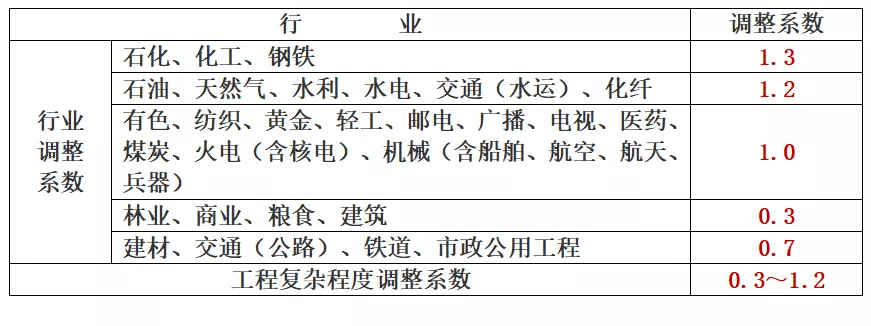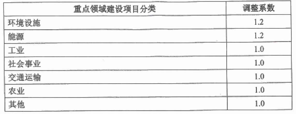 表2 按建設項目估算投資額分檔收費的調整系數(shù)