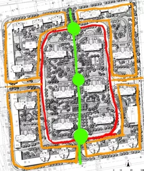 沿住宅基地外圍布置,形成良好的私密空間,給居民心里的安全感,但東西向建筑可能存在日照和綠化問題。