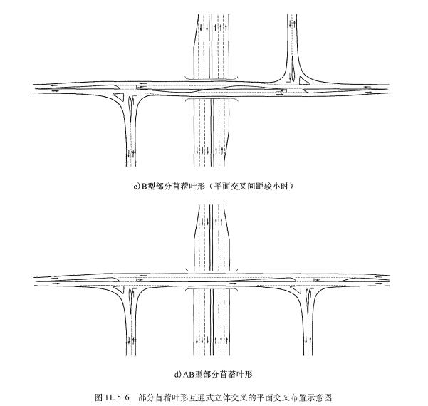 當(dāng)平面交叉不滿足設(shè)計(jì)通行能力要求時,應(yīng)調(diào)整互通形式或增加立體交叉匝道,減少交叉沖突交通量。