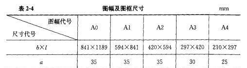 (1)圖幅及圖框尺寸應(yīng)符合表2-4的規(guī)定