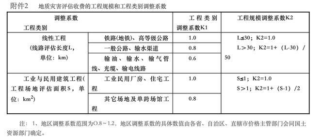 附件2:地質災害評估收費的工程規模和工程類別調整系數