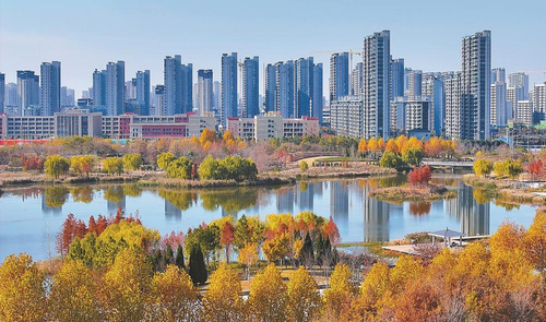 安徽省亳州市不斷推進生態(tài)城市建設(shè),圖為高新區(qū)鳳尾公園色彩斑斕,景色如畫。劉勤利 攝