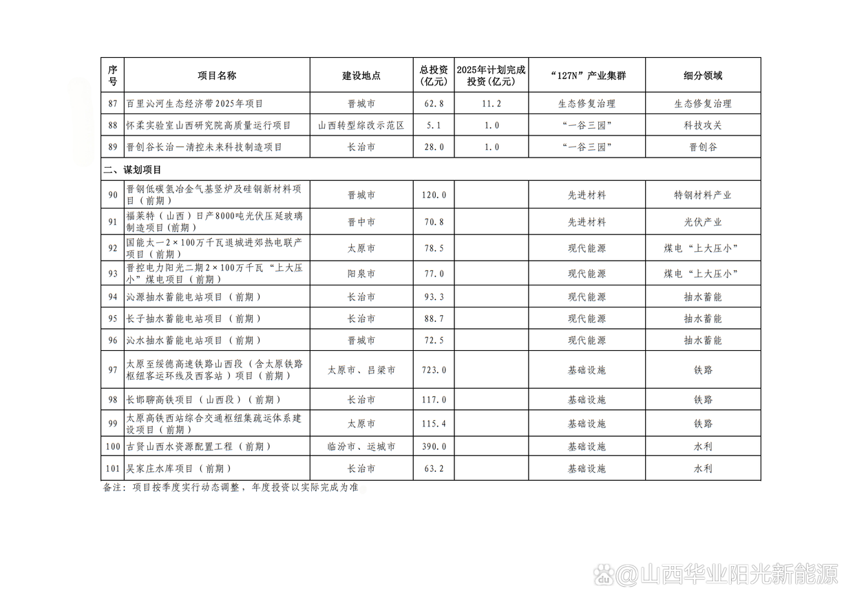 山西省2025重大項目建設年行動方案